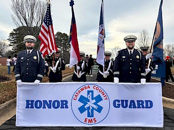 The Catawba County EMS Honor Guard, established in 2025, is a team of meticulously trained and highly disciplined EMS professionals. The primary function of the honor guard is to provide ceremonial honors for fallen EMS personnel, both past and present. Each team member is outfitted in a Class A uniform. The team members carry four flags during ceremonies including the American Flag, the North Carolina State Flag, the Catawba County Flag and the Catawba County EMS Agency Flag. Secondary functions of the team include, but are not limited to, marching in local parades, conducting memorial services and participating in other events by request when approved by the EMS Manager. Our team is also available to provide support and/or services to other local emergency service agencies and surrounding counties when requested.