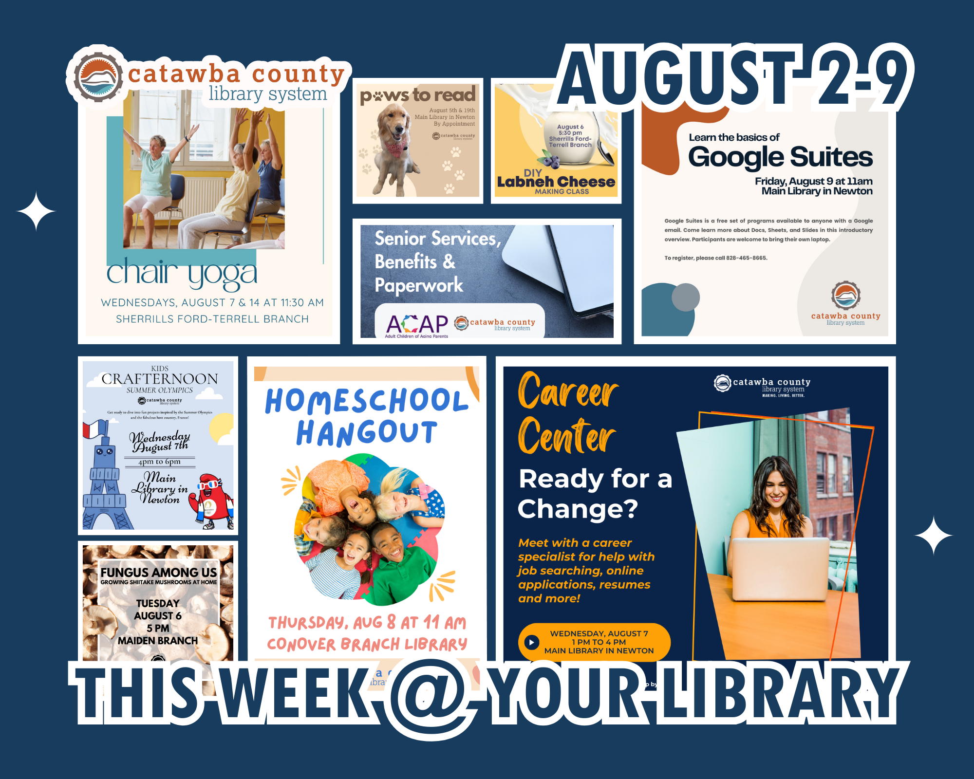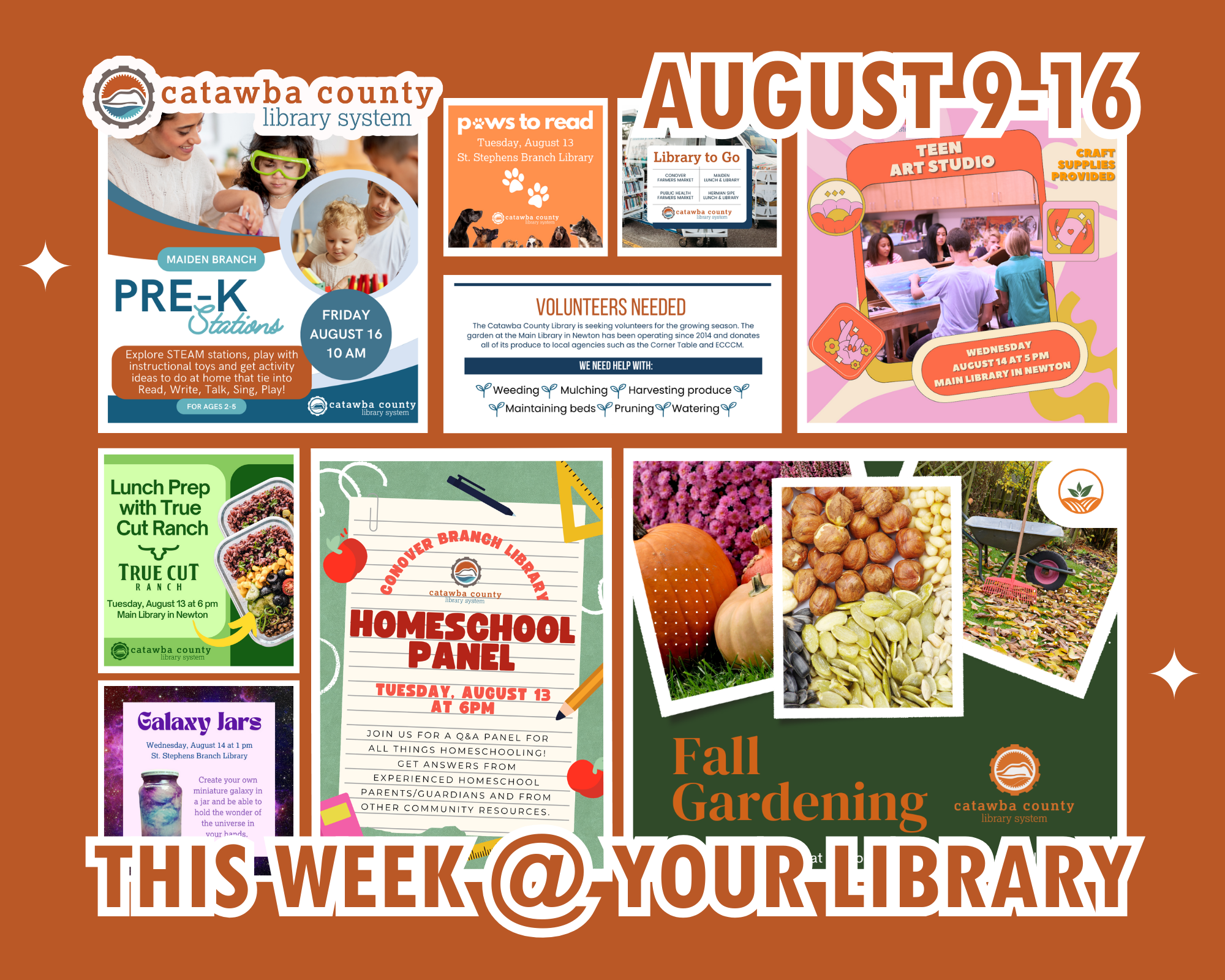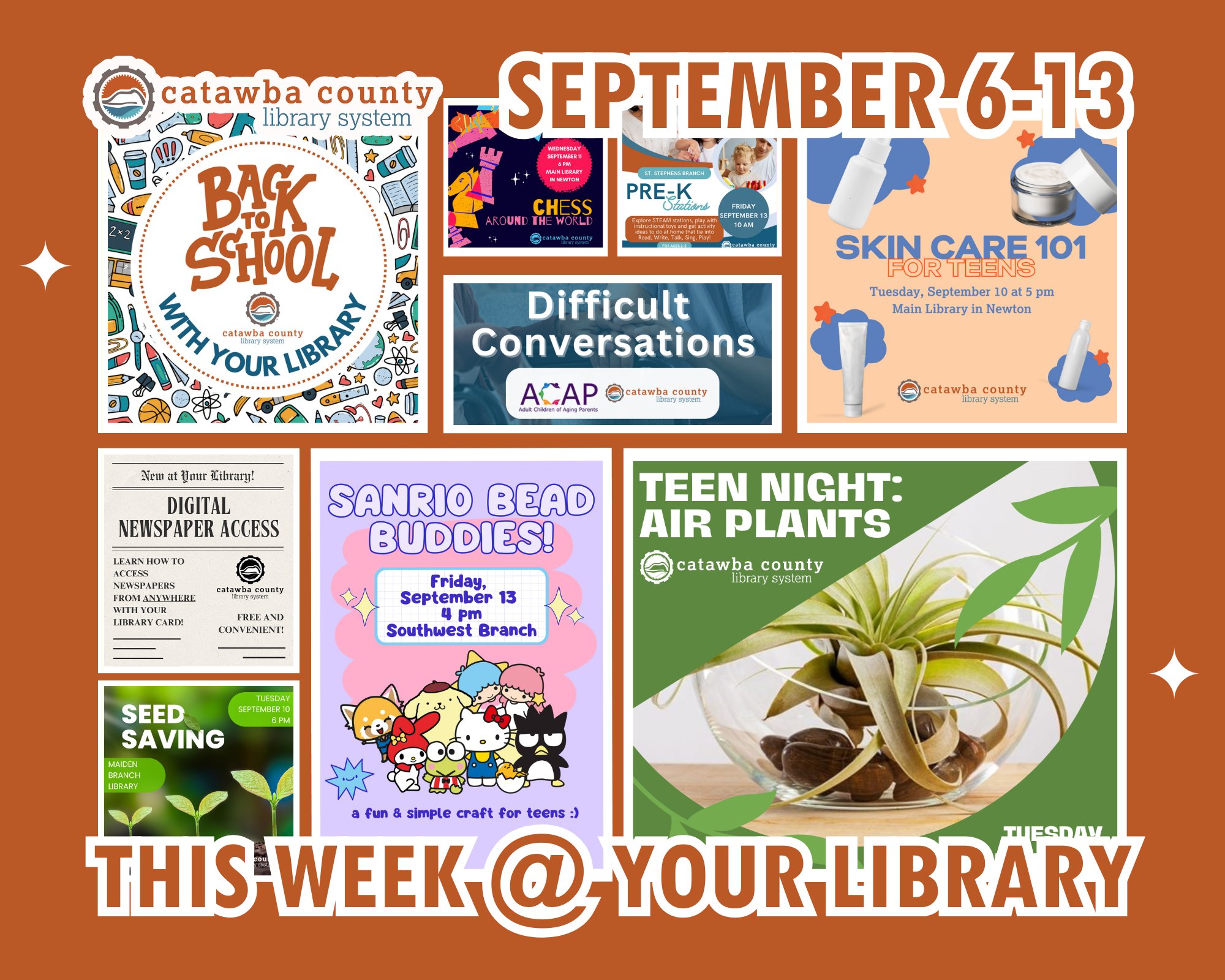 Join us at your library this coming week for a teen back-to-school party, kindergarten readiness storytime, and a visit from the Hickory Aviation Museum!...