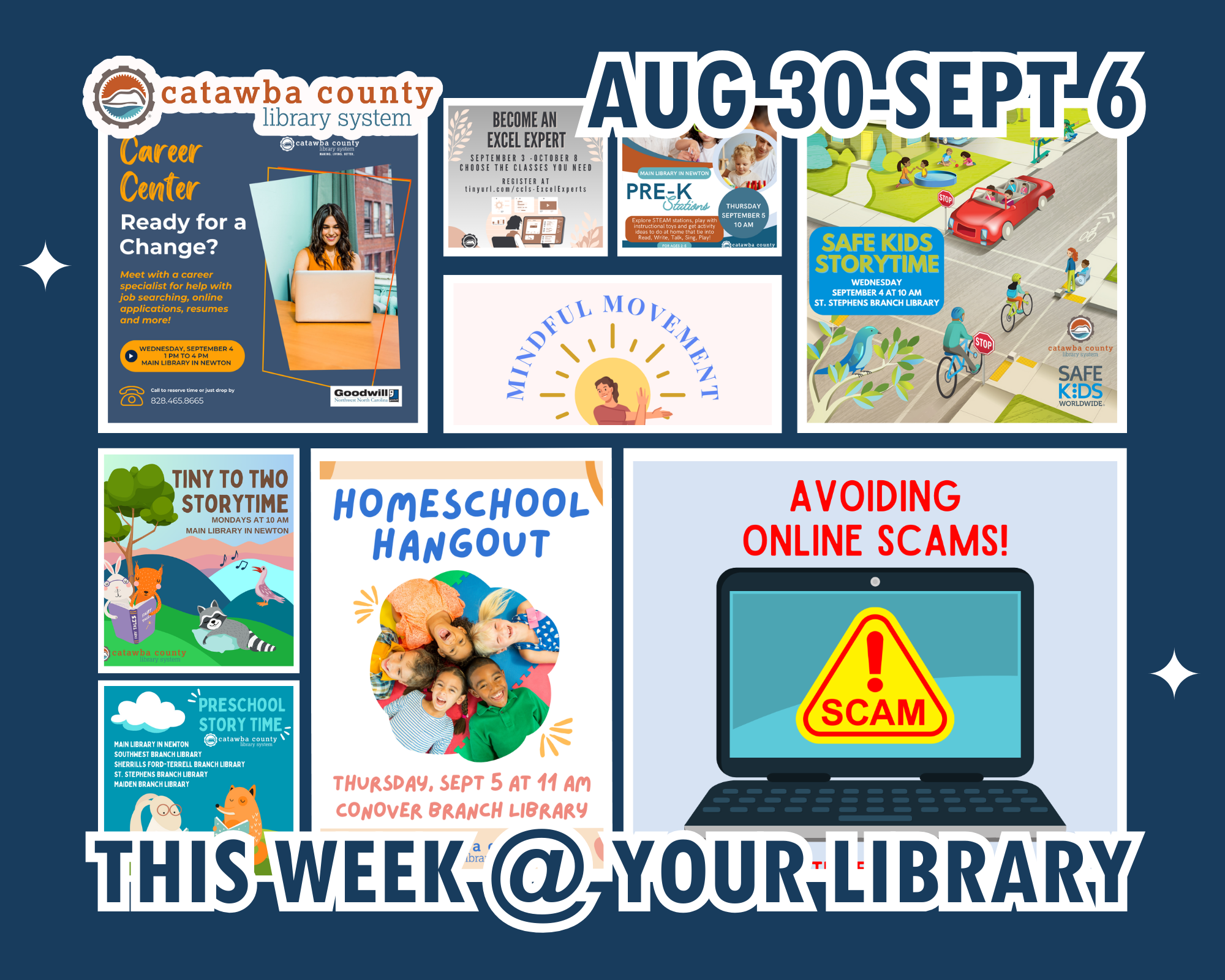 Join us at your library this coming week for a back-to-school Safe Kids storytime, avoiding online scams, homeschool hangout, and Excel workshops!...