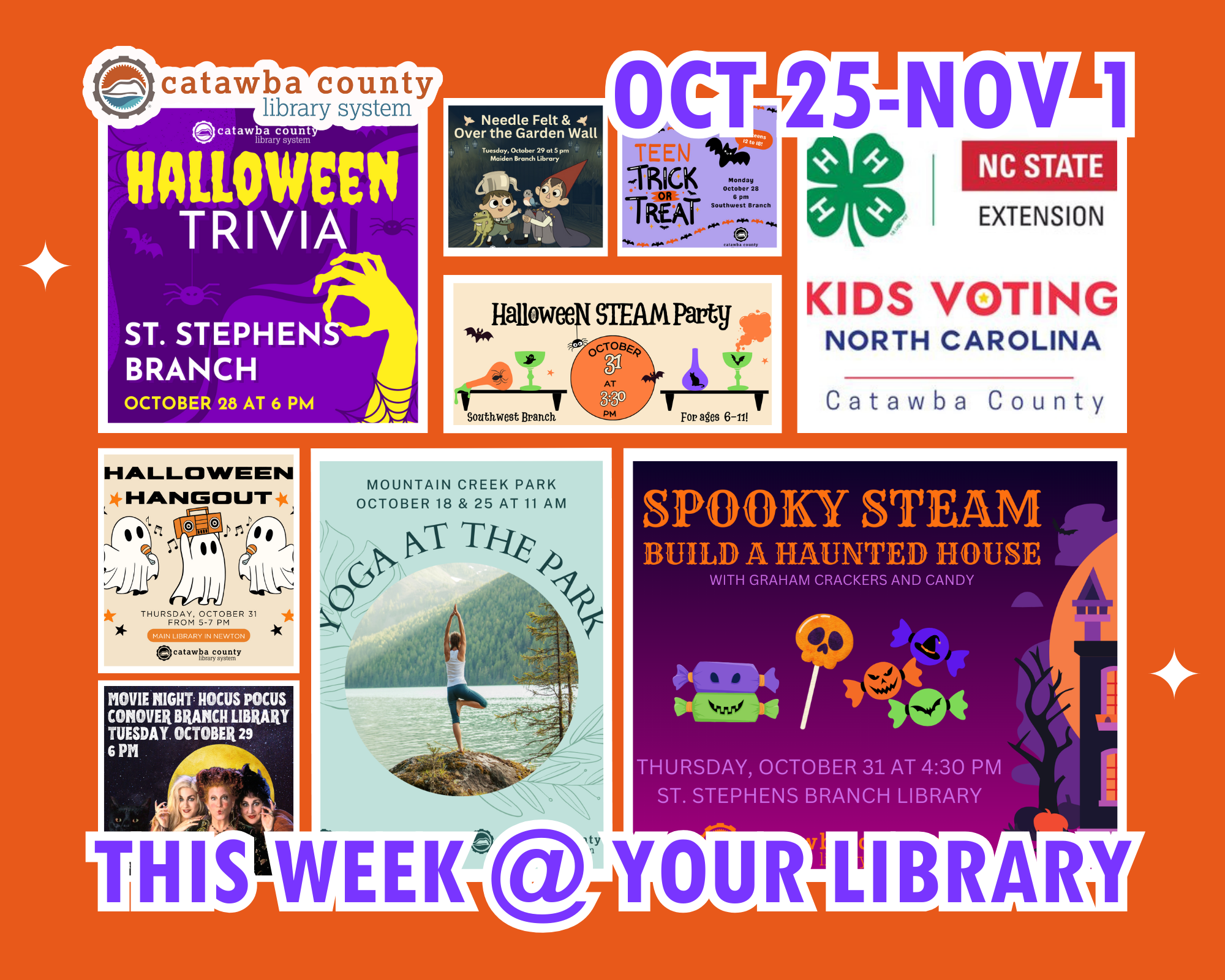 Join us at your library this coming week for kids voting, trick or treating and Halloween hangout for teens, movie night, Halloween trivia, and yoga!...