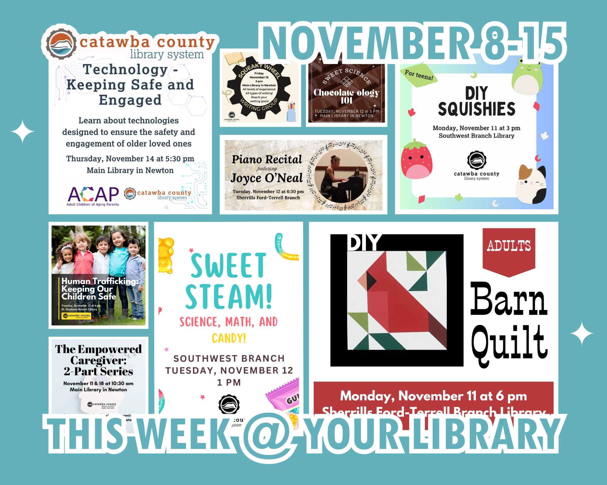 Join us at your library this coming week for DIY barn quilts and squishies, sweet treat science, and keeping our oldest and youngest learners safe....
