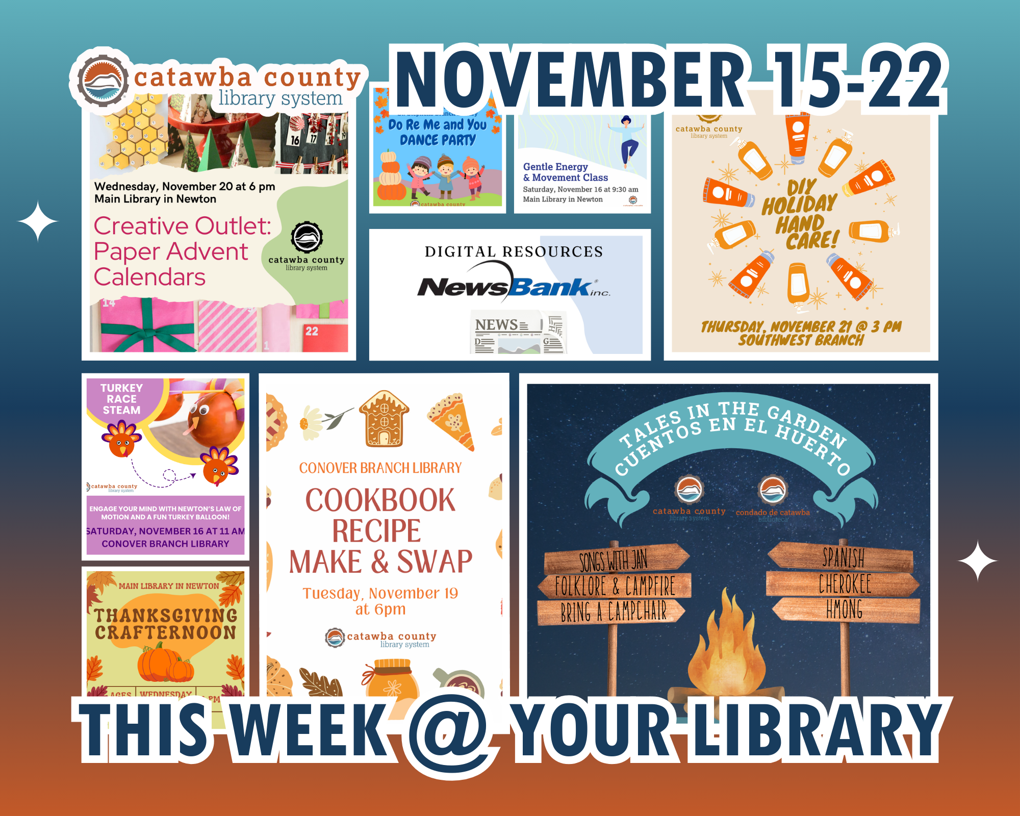 Join us at your library this coming week for homeschool fun, crafts for kids & teens, computer basics in Sherrills Ford & Newton, and A Limitless Cinderella Story!...