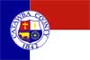 The Shield is divided into four parts, representing the national colors of red, white, and blue, with the fourth color of royal purple representing the blending of the national red and blue into royal purple. The county through the royal purple stands by the national colors.