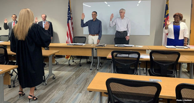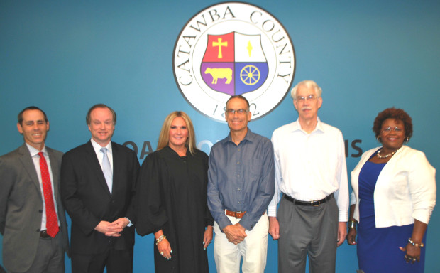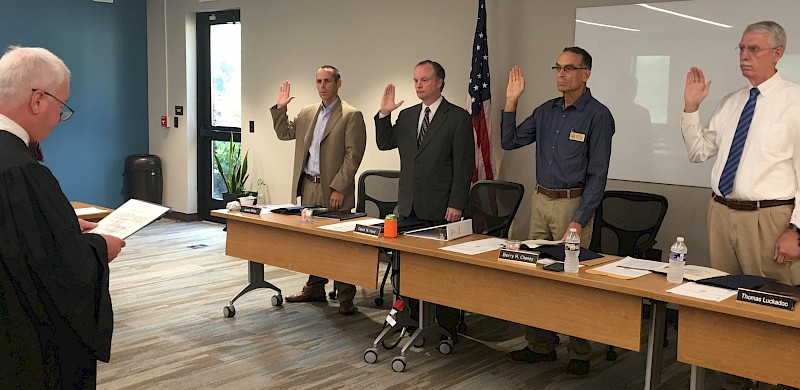 July 22, 2025 - The Honorable Robert A. Mullinax, Jr. swears in the 2025-2027 Catawba County Board of Elections.