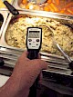 Temperatures of the food are closely examined. Time and temperature the cornerstones of serving safe food. Bacteria grow in the "danger zone" between 45° F and 135° F, so the establishment must keep hot foods at