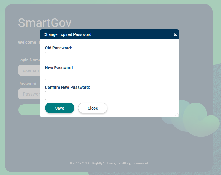4. When prompted to change your password, enter your Catawba County email address in the "Old Password" field. Next, enter a memorable and reasonably complex password into the "New Password" and "Confirm New Password" fields. Lastly, click on Save.