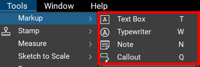 1. In Bluebeam Revu, click on Tools > Markups and select a markup.