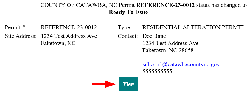 1. After your ePermit application has been approved and all related fees have been paid, you will receive an email notification letting you know that your permit is now "Ready to Issue." Click on the View button in the email notification to be taken to the corresponding ePermit application.