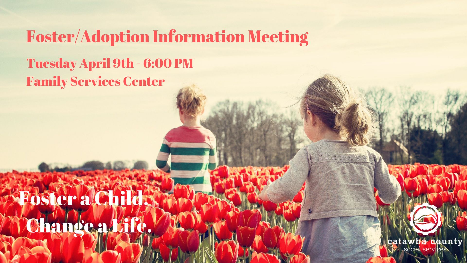 Family Builders of Catawba Valley invites anyone interested in fostering or adopting a child to attend the resource family information meeting at 6:00-7:30 PM Tuesday, April 9th. The meeting will be held at the Family Services Center, 3050 11th Avenue Drive SE, Hickory, N.C. 28602 (behind Catawba Valley Medical Center).