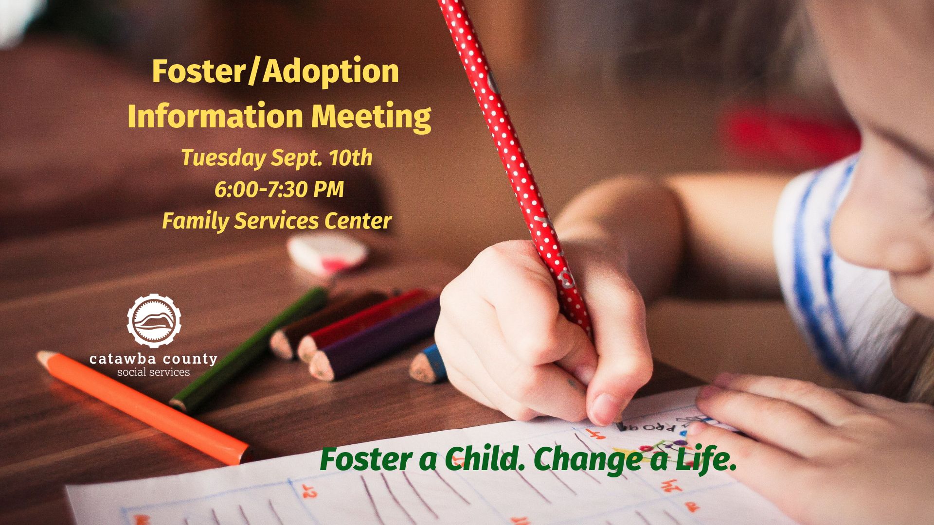 Family Builders of Catawba Valley invites anyone interested in fostering or adopting a child to attend the resource family information meeting at 6:00-7:30 PM Tuesday, Sept. 10th. The meeting will be held at the Family Services Center, 3050 11th Avenue Drive SE, Hickory, N.C. 28602 (behind Catawba Valley Medical Center).