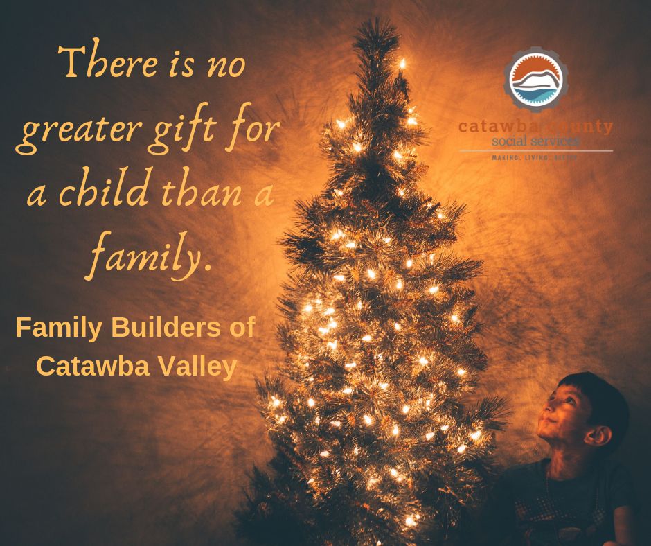 Family Builders of Catawba Valley invites anyone interested in fostering or adopting a child to attend the resource family information meeting at 6:00-7:30 PM Tuesday, December 11th. The meeting will be held at the Family Services Center, 3050 11th Avenue Drive SE, Hickory, N.C. 28602 (behind Catawba Valley Medical Center).