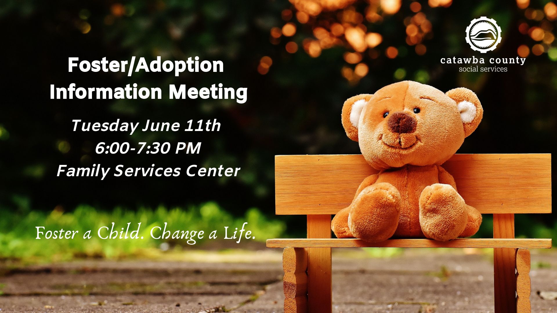 Family Builders of Catawba Valley invites anyone interested in fostering or adopting a child to attend the resource family information meeting at 6:00-7:30 PM Tuesday, June 11th. The meeting will be held at the Family Services Center, 3050 11th Avenue Drive SE, Hickory, N.C. 28602 (behind Catawba Valley Medical Center).