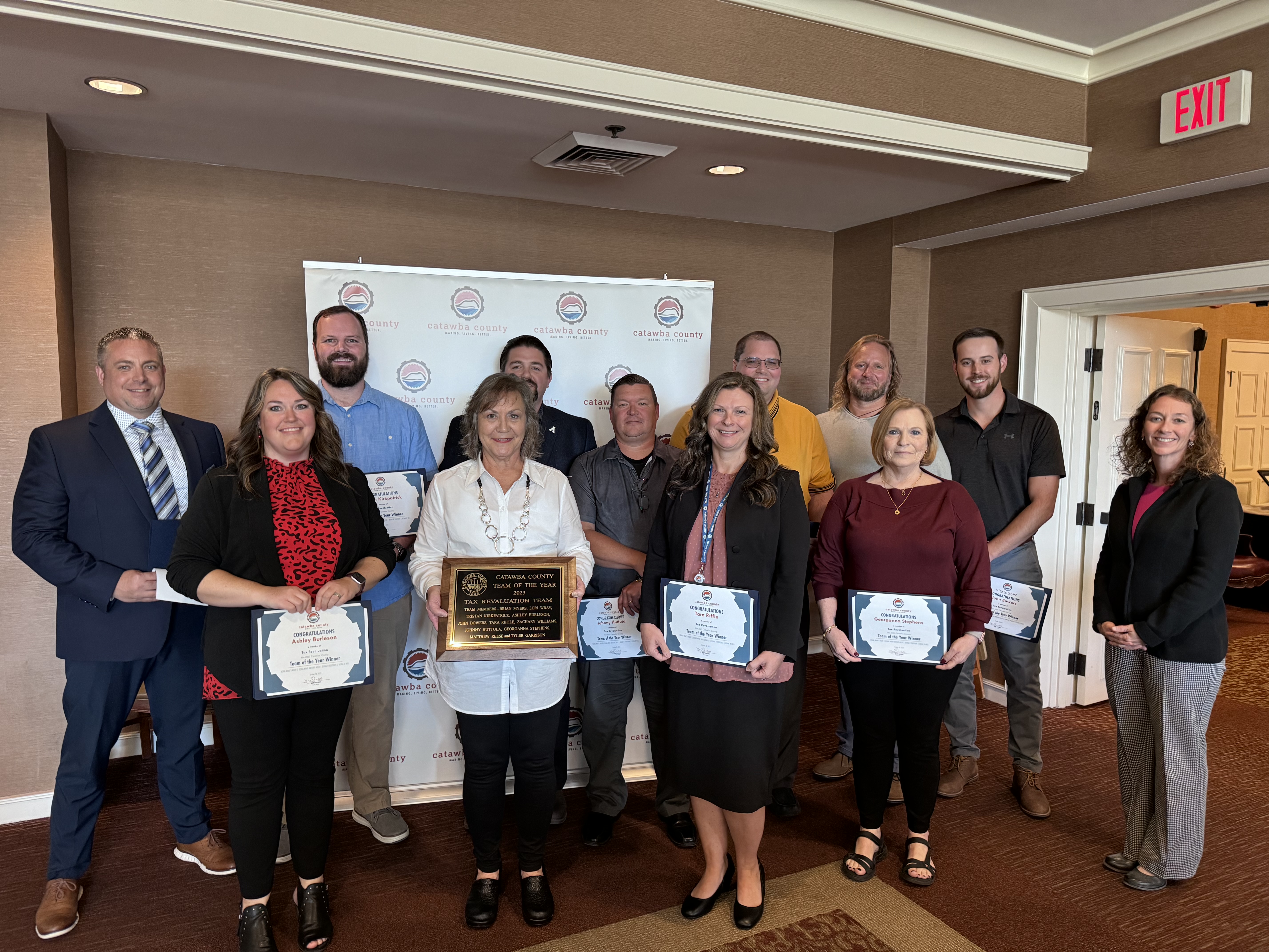 In addition to individual employee awards, Catawba County honored the Tax Revaluation Team as the County’s Team of the Year. Selected by a panel of municipal managers, this award recognized the following 11 County employees for their professional customer service and dedication during the County’s extremely busy revaluation process: Brian Myers, Lori Wray (retired), Tristan Kirkpatrick, Ashley Burleson, John Bowers, Tara Riffle, Zack Williams, Johnny Huttula, Georganna Stephens (retired), Matthew Reese, and Tyler Garrison.