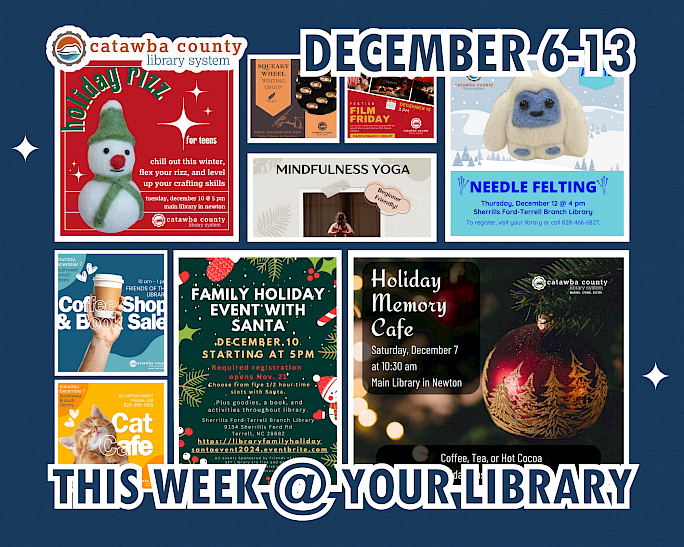 Yes, you read that right – it’s a cat café right here at your library! Feline fans ages six and up are invited to register for a 30 minute all you can pet Cat Session! Kitten and cat sessions courtesy of the Catawba County Humane Society! To register, please call 828-466-6818.
